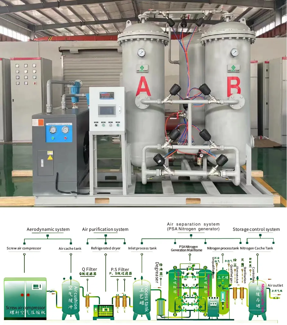 Garbitasun handiko nitrogeno likido txikien ekipoek aurrera eta alderantzizko fluxua erabil dezakete; Prozesuen antolaketa anitzeko metodoak, hala nola dorre bakarreko eta dorre bikoitza bezeroen presio maila desberdinak betetzeko. Gailu osoak DCS edo PLC sistema har dezake